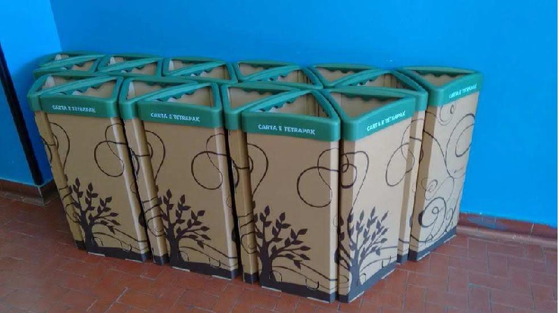 I contenitori per la raccolta di carta e tetrapack, plastica e alluminio nonché quelli per il rifiuto secco indifferenziato sono stati dotati di un coperchio, anch’esso realizzato in materiale riciclato, che presenta colorazioni differenti in base alla tipologia di rifiuto, in modo da poter aiutare anche i più piccoli, non ancora abili nella lettura, nella raccolta differenziata.